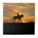 Una hermosa baldosa artística con un jinete y un caballo al atardecer.
