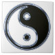 Baldosas de cerámica cuadrada con la imagen de un símbolo yin blanco y negro y yang con guarnecido plateado sobre blanco. Vea el tarro de caramelo, la taza, el plato de papel y las taras. Vea toda la colección Gemstones & Medallions Tile en la sección HOME.