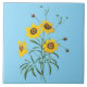 Coreopsis amarillo brillante de Redoute sobre fondo azul bebé.