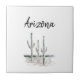 Baldosa cerámica de Cactus del desierto de Arizona, con diseño blanco y negro y grabado en personalizable negro. Un divertido artículo del suroeste para añadir a su decoración de casa occidental.