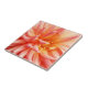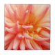 Las dalias son una familia de flores increíble, con tantas formas, colores y tamaños. La fotografía original de MaeFlowers en esta pequeña baldosa de cerámica muestra una flor asombrosa en plena floración, una esfera de pétalos de color melocotón. Los pétalos cilíndricos que se estrechan suavemente parecen curvarse hacia afuera desde la baldosa. La foto tiene un aspecto muy tridimensional.