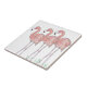 Baldosa cerámica con lápiz y ilustracion de tinta de tres flamencos rosados. La artista Leah Wiedemer hizo este diseño pensando en su estado natal de Florida. El flamingo rosa es un símbolo icónico de la vida tropical de Florida. Estos azulejos decorativos realzarían la decoración de cualquier casa, pero la cocina o el baño de tu casa de playa serían perfectos.