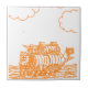 Azulejo dibujo de un barco en línea naranja