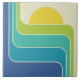 Diseño retro de sol geométrico en verde azul y amarillo.