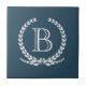 Diseño monograma con decoración de plumas de laurel sobre fondo azul