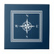 Diseño de temática náutica con decoración de brújula en cuadrados rayados sobre fondo azul