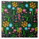 Azulejo Diseño negro de flores de jardín azul Bonito