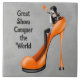 Con un glamour sin esfuerzo y un guiño a las travesuras, una mujer parisina de moda se sienta dentro de un talón de estilete de gran tamaño, su trono de alta costura. Vestida de elegancia clásica con un toque moderno, ella se perfila con aplomo y alegría. Mientras levanta la mano para dar un beso, un rastro de corazones baila en el aire, como si el propio París exhalara un poco de su encanto. La escena es igual de fantasía de moda y coqueteo francés —una oda al estilo, la confianza y la magia de un beso bien posicionado.