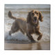 Azulejo "Diversión costera: Una obra de Cocker Spaniel en