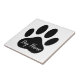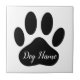 This cartoon style dog paw print tile is a great way to add a personalized touch to your home or businesses like pet shops. It features a unique, cartoon-style paw print design and is customizable with the name of your choice. The square tile is made from durable ceramic.