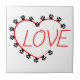 Dibujos de huellas de perros, un corazón rojo y la palabra "amor". Diseño original.