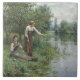 Azulejo Dos mujeres pescando en la hierba junto al río