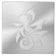 Un dragón tribal con una mirada grabado en relieve sobre un fondo plateado brillante, de efecto radial