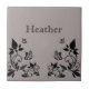 Azulejos florales de mariposa dulce y delicado con un fondo gris sucio y polvoriento, mariposas ébano y adornos de viñas florales. Esta elegante baldosa florida completaría cualquier decoración. Fácil de personalizar, simplemente agregue el texto personalizado de su elección en los campos de texto proporcionados. Haga clic en el botón "Personalizar" para encontrar opciones de personalización adicionales.