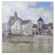 Alfred Sisley. edificios y puentes con agua en primer plano; iglesia izquierda del centro. Paisaje con un río profundo. Hay pequeñas casas y una catedral a orillas del río. Hay dos puentes con arcos a lo largo del río. Pequeñas nubes están atravesando el cielo azul. Reproducción de obras famosas de imágenes artísticas de dominio público.