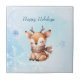 Un bonito ciervo personalizado con una bufanda de yeso se sienta alegremente entre copos de nieve. Las palabras "Felices Fiestas" se pueden cambiar fácilmente a cualquier mensaje que desees.