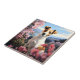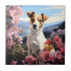 La imagen de esta baldosa muestra a un Jack Russell Terrier sentado en medio de un florecimiento de flores de color rosa suave. Los ojos agudos y las orejas perfiladas del perro transmiten un sentido de alerta y curiosidad, característico de su animada raza. El primer plano es un motín de color con los pétalos delicados de las flores, que contrasta maravillosamente con el suave blanco y el abrigo tostado del Terrier. Al fondo, se extiende un paisaje sereno que ofrece una vista de las colinas onduladas y un cielo azul claro salpicado de nubes blancas onduladas. Esta imagen es una celebración del esplendor de la naturaleza, con el encantador Terrier como compañero y como parte vibrante del tableau floral. generoso contenido