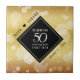 ¡Celebra el 50 aniversario del boda dorado con esta elegante baldosa! Las elegantes letras en blanco y negro con confeti hexagonal sobre el fondo de un Relieve metalizado dorado le dan un toque memorable a esta ocasión especial y a un hito extraordinario. Personaliza con los nombres de la pareja y años de matrimonio. Diseño © W.H. Sim. Ver más en zazzle.com/expressionsoccasions
