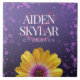 Celebra tu día especial con este azulejo boda conmemorativo con temática floral, que incluye elegantes letras blancas con confetti violeta de lavanda y una margarita africana dorada sobre un fondo violeta morado a negro. Personalizar con los nombres de los recién casados y fecha de boda. Diseño © W.H. Sim. Ver más en zazzle.com/expressionsoccasions