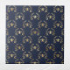 Baldosa azul marino con abejas doradas en laurel. El código hexadecimal para el azul marino es #202A44.