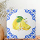 Inspirado por los limones de la costa amalfitana. Elegante baldosa de cerámica azul, amarilla y blanca.