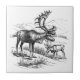 Ilustracion de tinta blanca y vintage de ciervos en pastos en las montañas para acentuar tu pared de tejas en cualquier espacio.