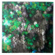 Este diseño está inspirado en las telas de secuencias que tengo en mi taller de arte y uso ocasionalmente de decorar artículos únicos para la moda. He escogido un aspecto de las secuencias de todo el mundo que puede ser llamativo pero que también tiene un estilo glamouroso elegante. Las secuencias son un tema clásico y los matices de los verdes vibrantes y los grises elegantes hacen que este producto sea atractivo y versátil en varias combinaciones. Las secuencias también son divertidas de usar en mezclas de estilos modernas.