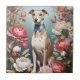 Azulejo Elegante Whippet Pink Peony Flores fondo azul