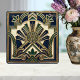 Azulejo Emerald Navy Gold Art Deco Sun Rays Geometric