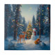 Azulejo Escena De Árbol De Navidad Cute Deer Fawn Snowman