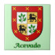 Apellido Español * Acevado * Mosaico Decorativo Escudo Familiar. El fondo es transparente, así que puede elegir un color que se ajuste a su decoración, sólo tiene que hacer clic en Personalizar. ¿Es su nombre de origen español? Podemos investigar su nombre y proporcionarle un Tile, una camiseta u otro producto con su escudo familiar aquí en Zazzle! Sólo pregúntennos. Ideal para regalos o reuniones familiares. ¡Muestra tu orgullo familiar!