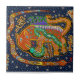 Rey tigre, Espíritus chamanes, tigre y serpientes, espíritus tigres serpientes, arte folclórico kuna, mola india kuna, Virginia Vivier, arte popular vagabond, arte indie, bohemio, azul naranja negro amarillo.
