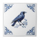 Azulejo Esquinas florales azules y blancas de Crow Bird De