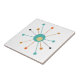 Esta fabulosa baldosa decorativa moderna de mediados de siglo presenta un estallido atómico en los colores azul turquesa, dos tonos naranja, crema y negro. ¡Esto hará que tu decoración sea muy colorida!