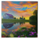 Azulejo Estanque de techo púrpura para granjas al amanecer