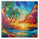 Estilo de cristal manchado de sol tropical con arte en la playa