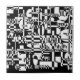 An abstract black-and-white composition featuring the names of Ethiopian cities written in Amharic, expressing urban diversity and cultural identity through layered typography and geometry.