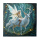 Fairytale tile. A beautiful fairy in white riding on a white magical deer. Pretty fairy tale enchanted forest.