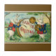 Azulejo Fancy White Easter Bunnies Dark Brown