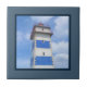 Diseño de temática náutica con decoración de faro acuático en un marco azul oscuro. Es posible cambiar el color de fondo y añadir uno diferente al diseño con su elección.