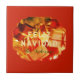 Azulejo Feliz Navidad Red Gold Green Nombre elegante