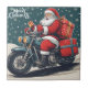 Azulejo Feliz Navidad Vintage Santa en motocicleta