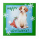 Celebra la temporada navideña con un lindo cachorro de Puntero sentado en un sombrero de Santa en medio de copos de nieve y las palabras, ¡Felices Howlidays! Gran idea de regalo de vacaciones para la familia y amigos amantes de la pintura.