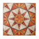 This seamless geometric pattern ceramic tile features a radiant starburst medallion design in warm shades of red, orange, amber, and cream. The intricate shapes and fine line details evoke the look of handcrafted mosaic or stained glass artistry. Inspired by Mediterranean tilework and sun-inspired geometry, the design combines bold color energy with balanced symmetry, creating a sense of warmth, creativity, and timeless craftsmanship. Ideal for lovers of artistic patterns, geometric design, and vivid, earthy tones.
