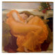 Este diseño presenta un cuadro del artista británico Sir Frederic Leighton (1830-1896), famoso por sus obras que representan escenas históricas, bíblicas y clásicas en un estilo académico. Esta pintura muestra a una mujer increíblemente bella usando un vestido rojo diafanoso mientras se queda dormida. Algunos historiadores del arte han dicho que la rama tóxica del adelgazamiento en la parte superior derecha podría simbolizar el frágil vínculo entre el sueño y la muerte. Los ricos colores y el elegante entorno de mármol recreado son característicos del estilo realista de Leighton, al igual que su uso de la luz natural. Esta pintura es ampliamente considerada como la obra magnum de Leighton y se completó en 1895; actualmente se encuentra en el Museo de Arte de Ponce, Puerto Rico.
