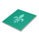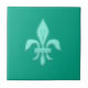 Baldosa cerámica de un patrón clásico de fleur de lis (fleur-de-lis) en agua suave sobre un fondo turquesa/pavo real