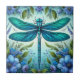Hermosa libélula azul con flores. Magnífica baldosa para la decoración de tu casa.