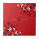 Azulejo de cerámica para regalo de boda chino elegante con símbolo de doble felicidad y flores de cerezo rojas y blancas.