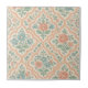 Baldosas de cerámica marroquí en melocotón, rosa, azul y verde pastel. Presenta una decoración floral y arabesca con motivos bohos, mediterráneos y orientales.