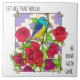 Baldosa decorativa floral (rosas rojas con pájaro azul), con versículo de escritura de 1 Corintios 16:14 "Que todo lo que hagas se haga con amor".